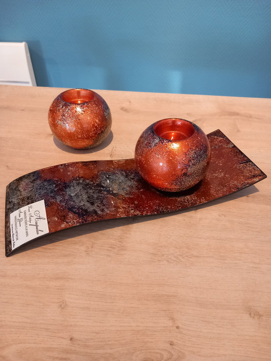 Bougeoir sur plat fleurs de prunier