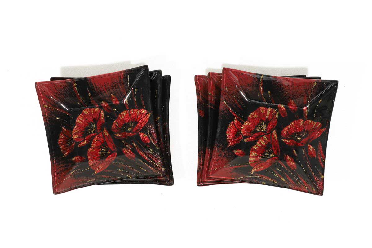 Découvrez les coupelles carrées de la collection "ACAPULCO Coquelicots festifs", où le rouge flamboyant des coquelicots contraste magnifiquement avec le fond noir élégant. Chaque pièce, décorée à la main, incarne l'énergie et la beauté de cette fleur, apportant une touche de dynamisme à tout intérieur. Idéales pour créer des ensembles cadeaux en associant plusieurs articles de la collection.