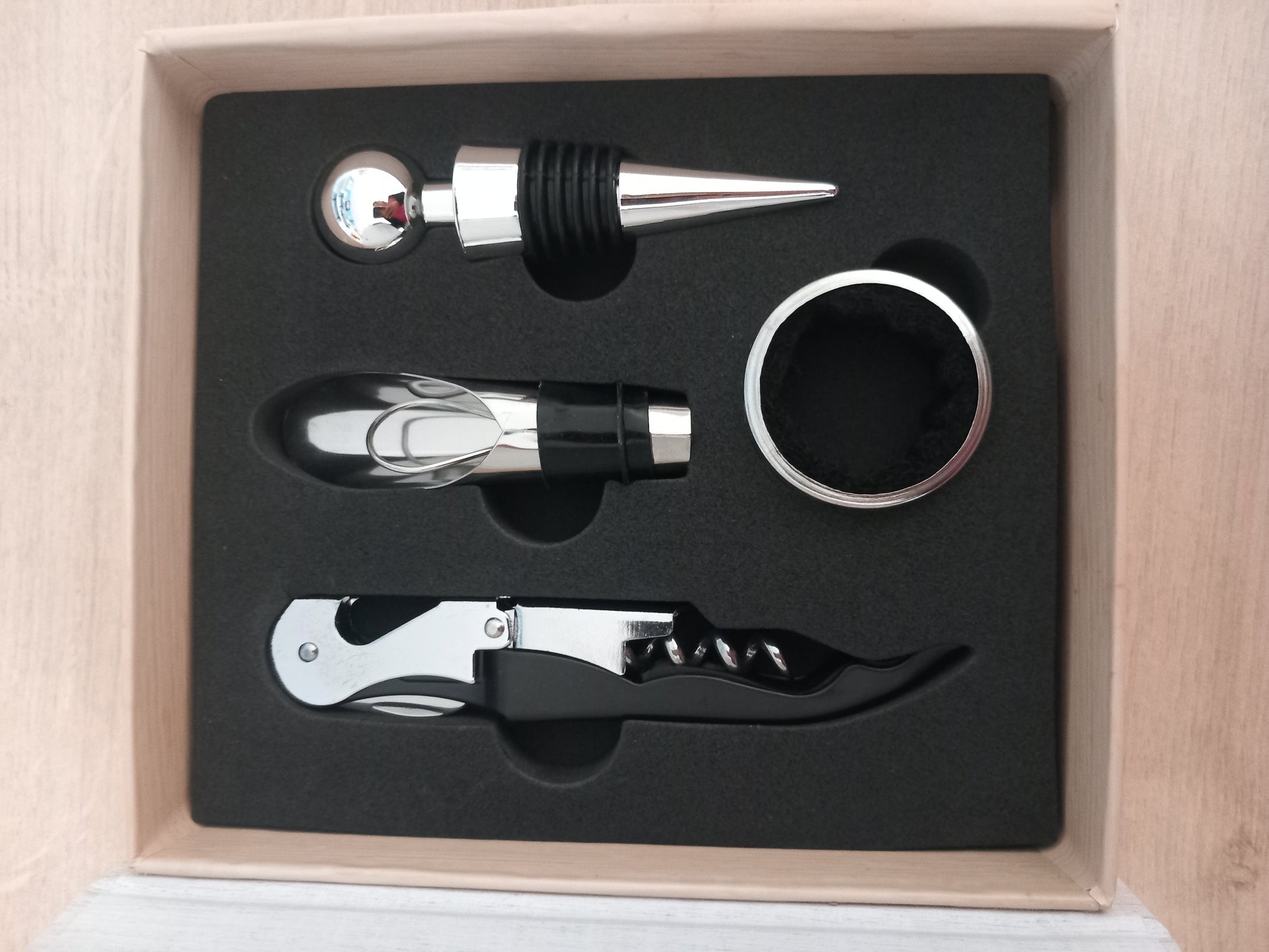 Coffret représentant un livre contenant 4 accessoires pour les amateurs de vin