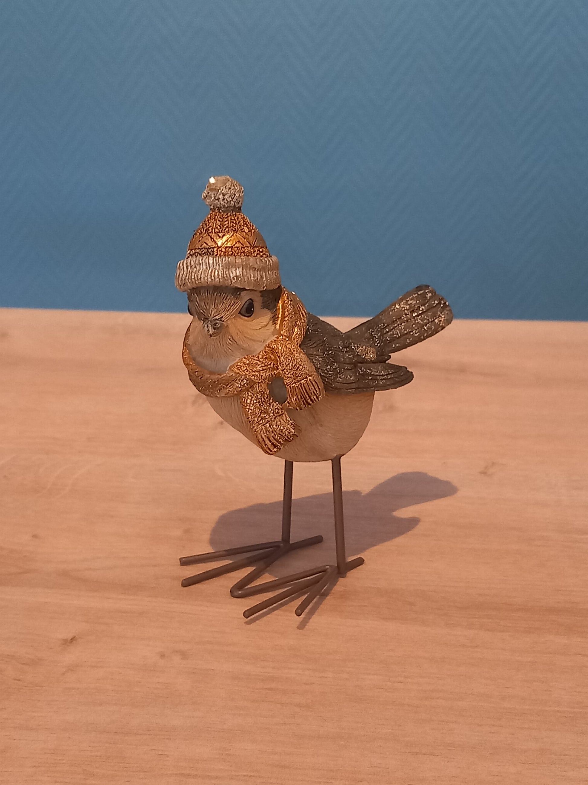 Oiseaux d'hiver en polyrésine avec pieds en métal