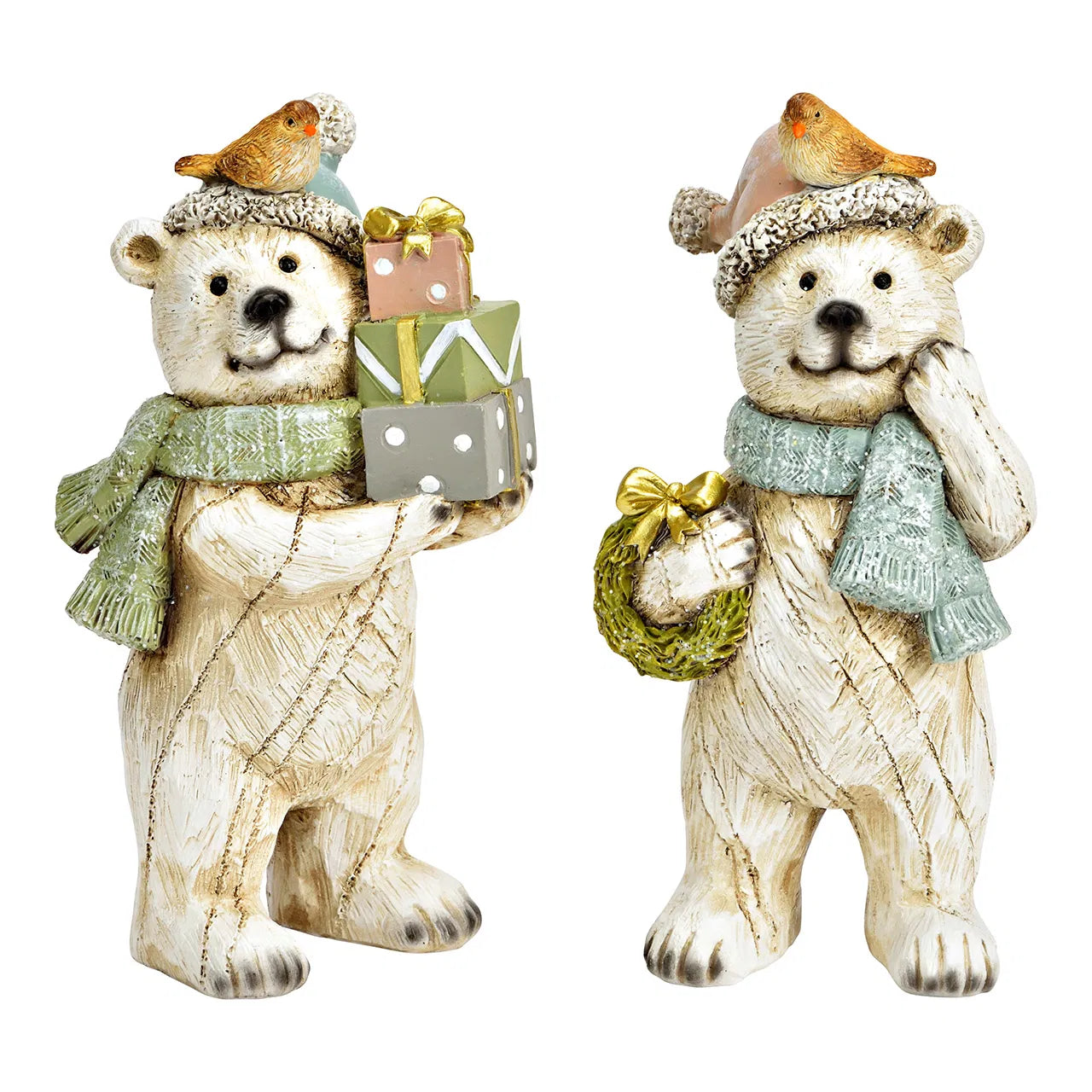 Figurine ours blanc avec décoration de Noël en polyrésine
