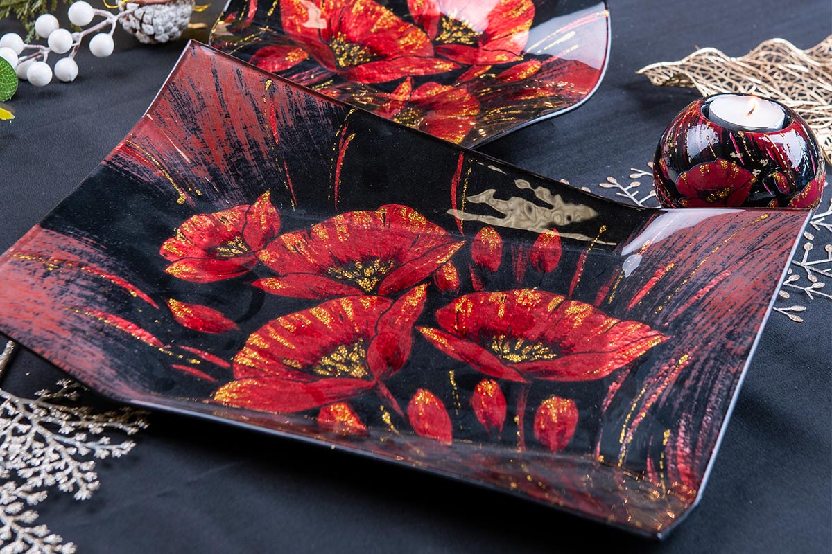 Découvrez les plats rectangulaire de la collection "ACAPULCO Coquelicots festifs", où le rouge flamboyant des coquelicots contraste magnifiquement avec le fond noir élégant. Chaque pièce, décorée à la main, incarne l'énergie et la beauté de cette fleur, apportant une touche de dynamisme à tout intérieur. Idéales pour créer des ensembles cadeaux en associant plusieurs articles de la collection.